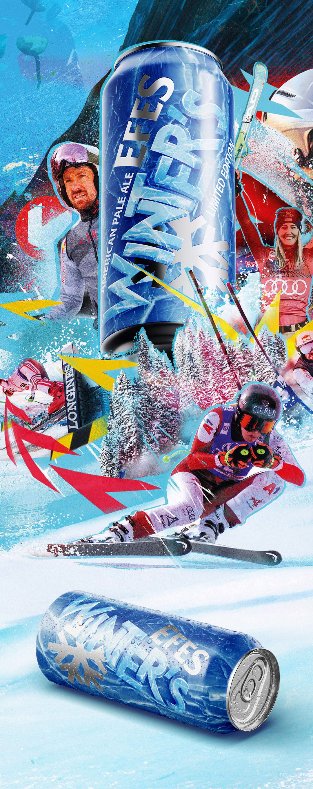 The visual direction aimed to convey a cold, icy atmosphere aligned with the winter concept. The aluminum surface of the can was intentionally integrated into the design to enhance a sporty and adventurous winter character.